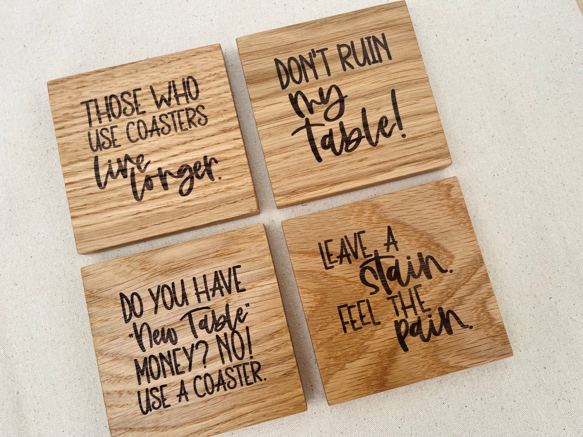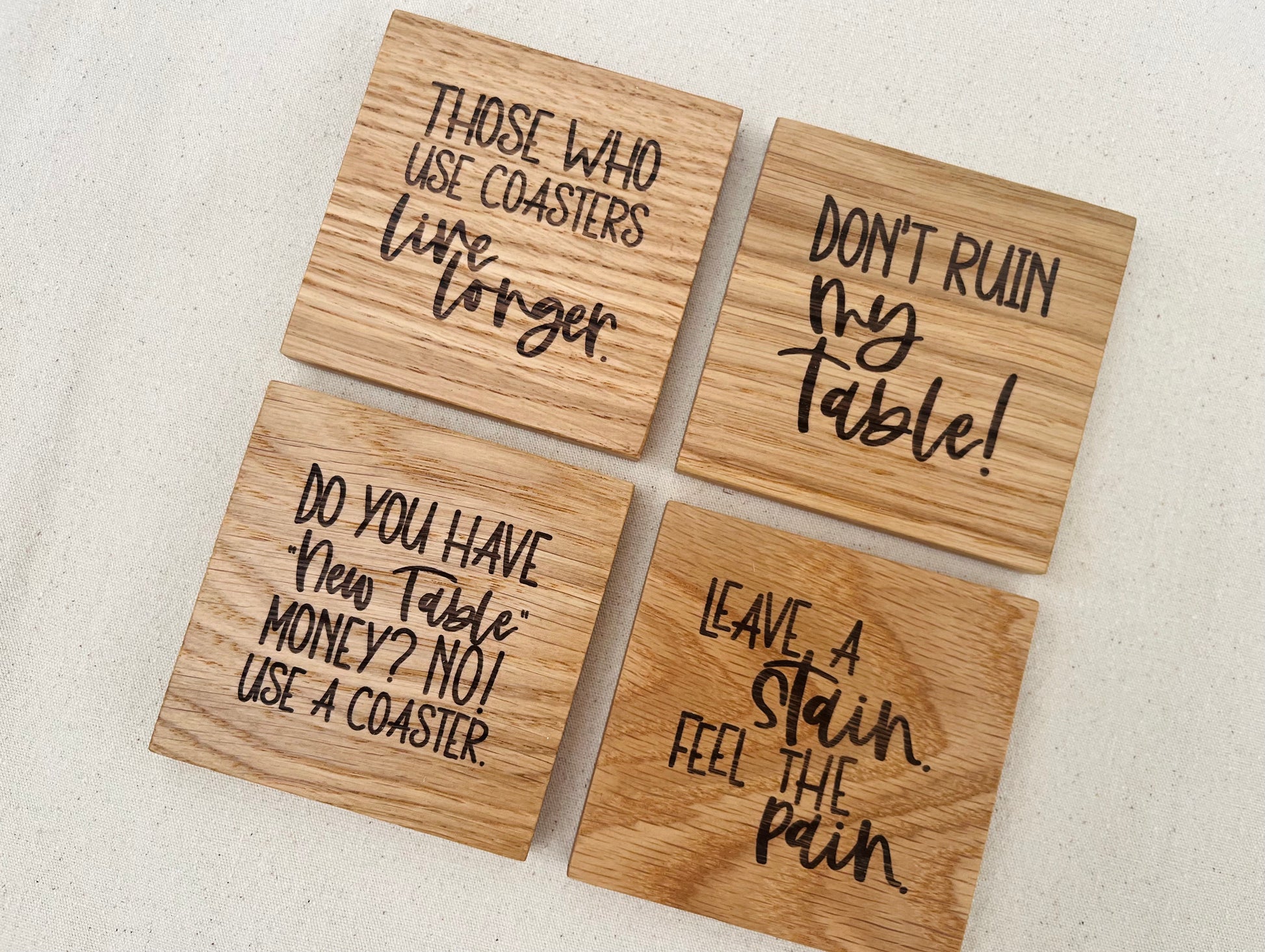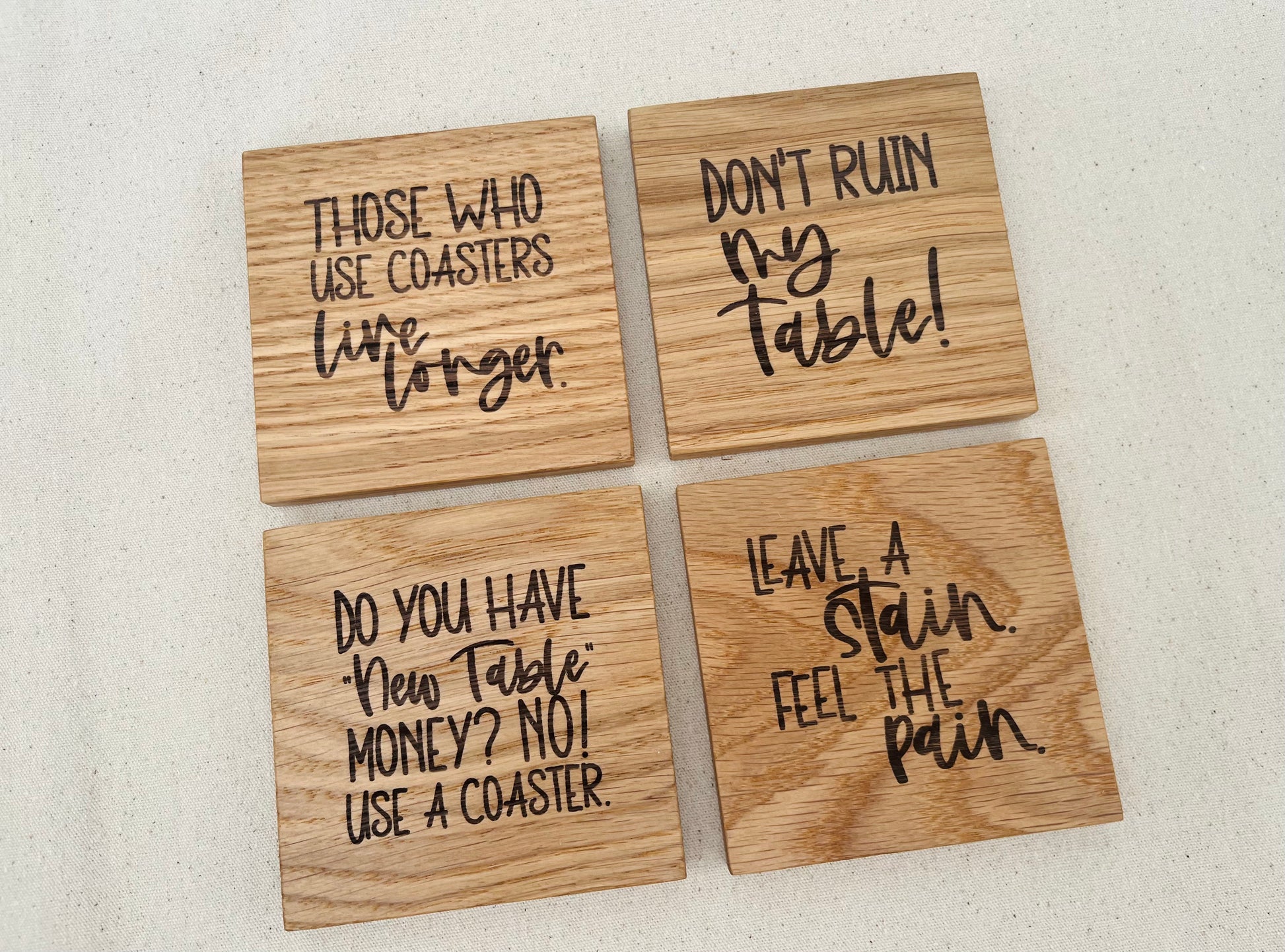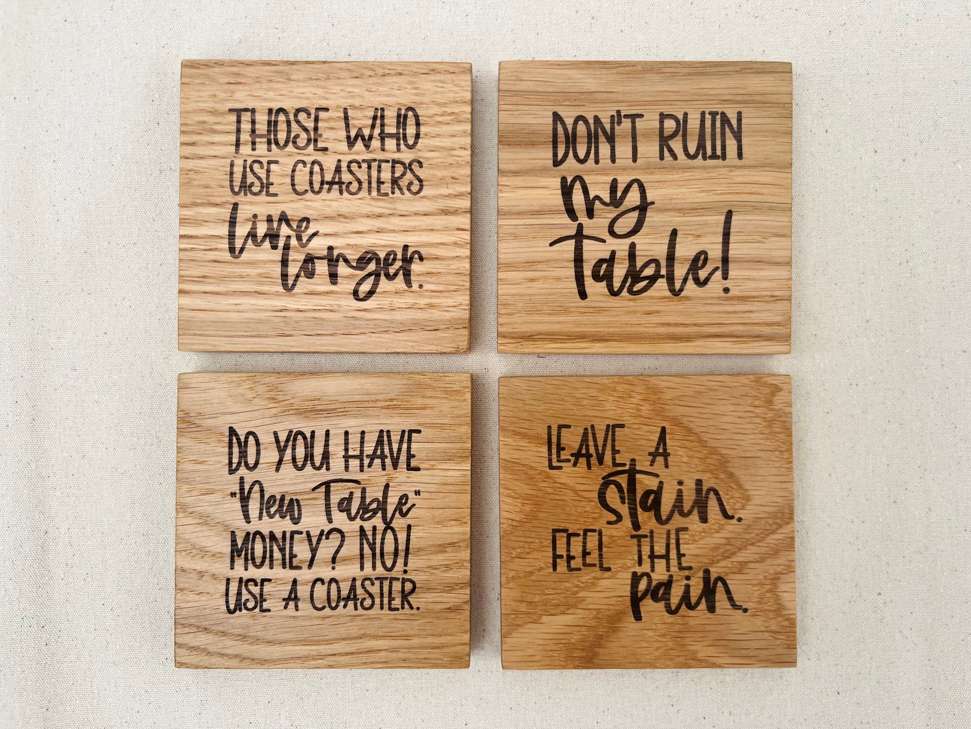 Engraved Oak Coaster Set - Don’t Ruin My Table