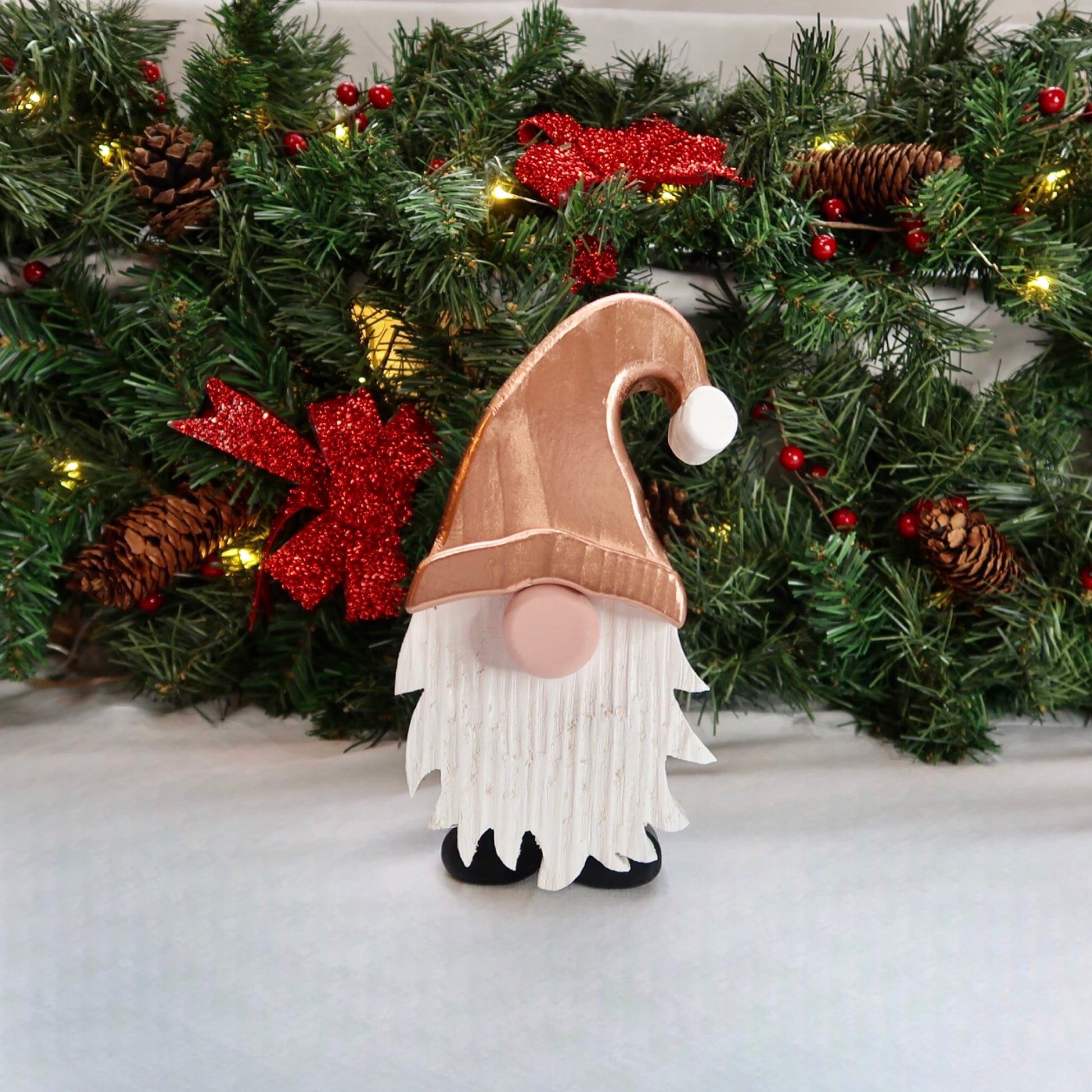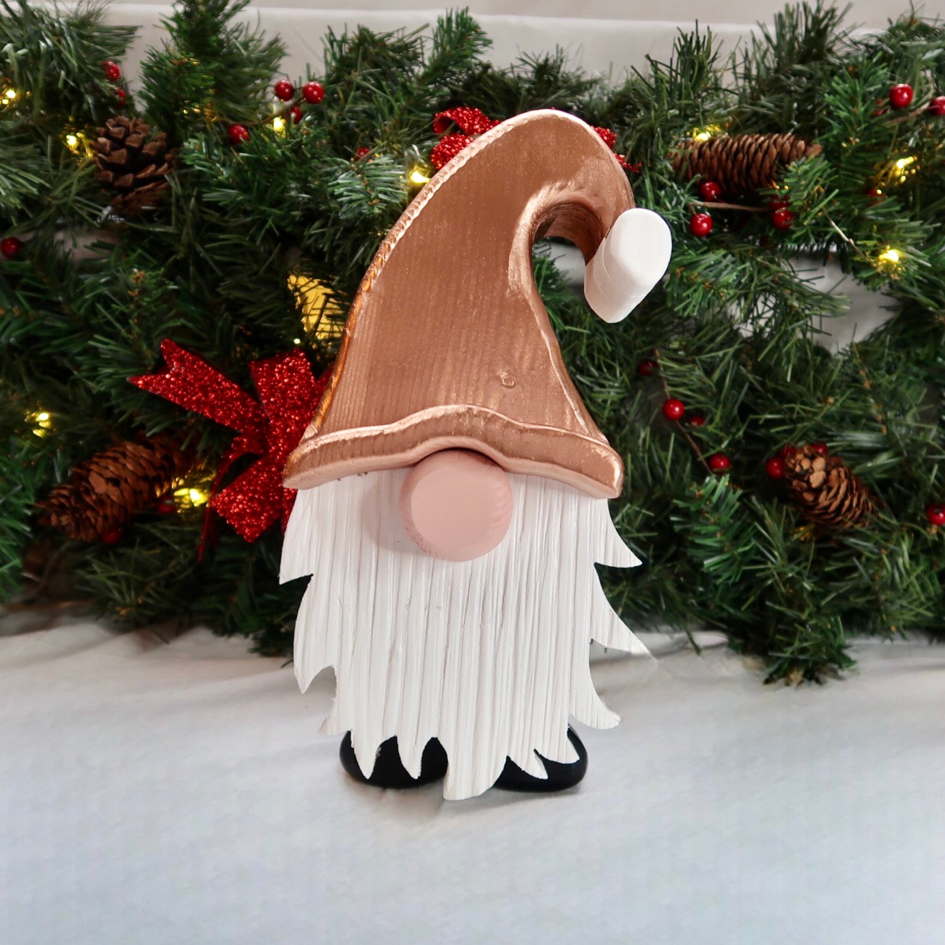 Festive Gonk - Handmade Decorative Wooden Gnome - Copper Rose Gold