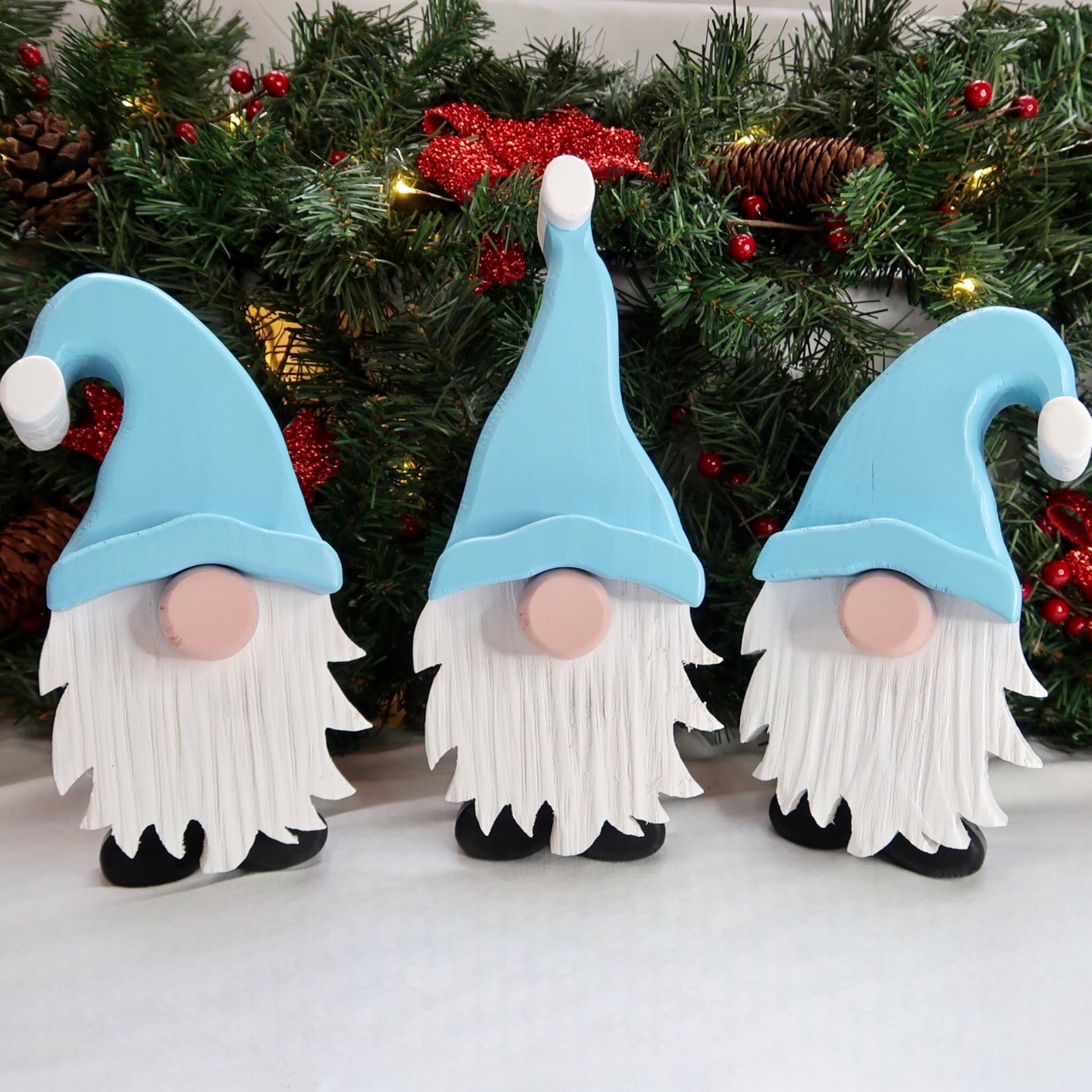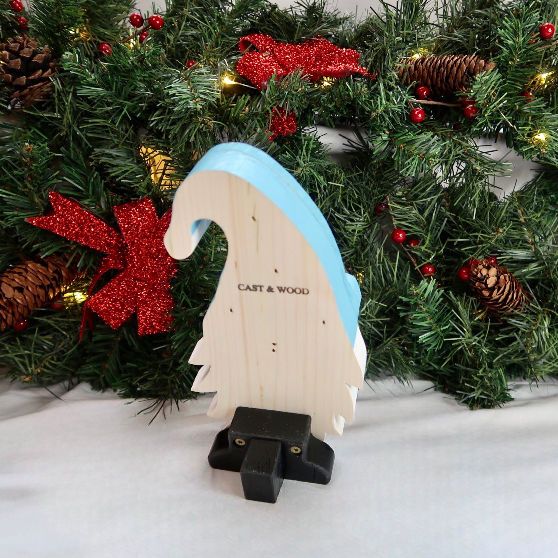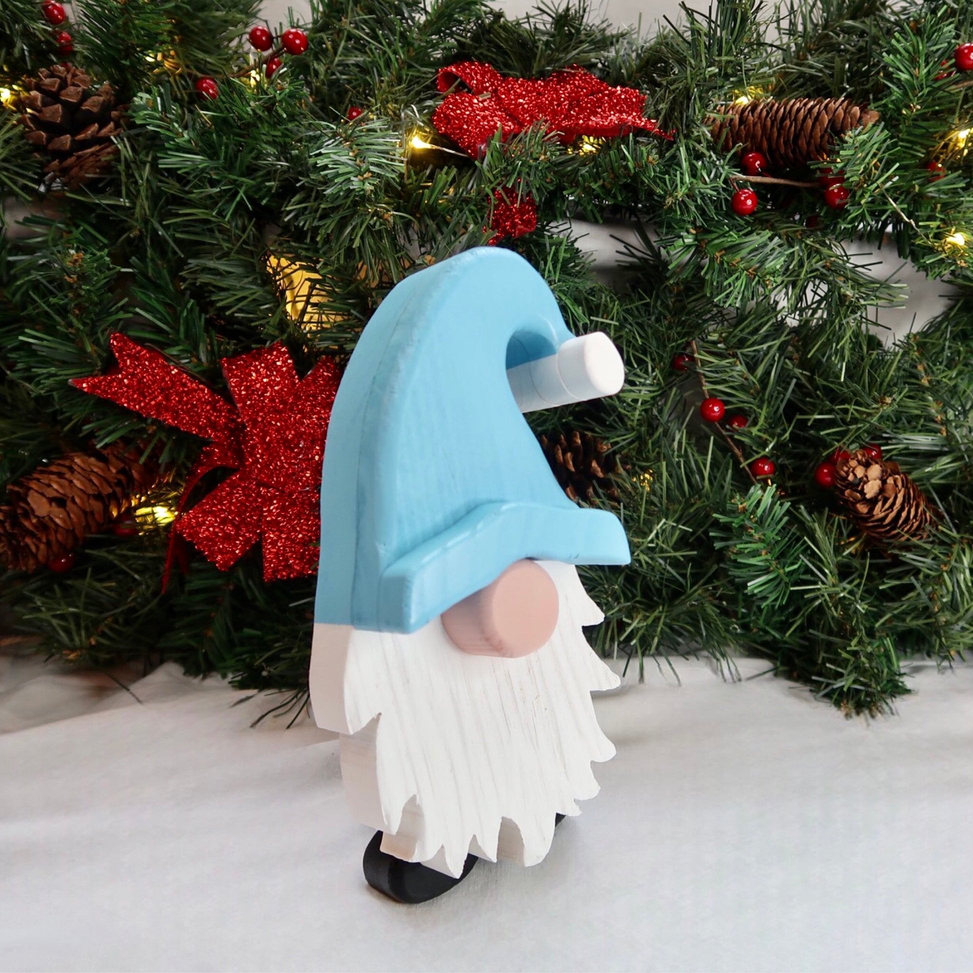 Introducing the Festive Gonk - Handmade Decorative Wooden Gnome in Sky Blue! Get ready to add a touch of whimsy and charm to your Christmas decor with this delightful freestanding decoration.