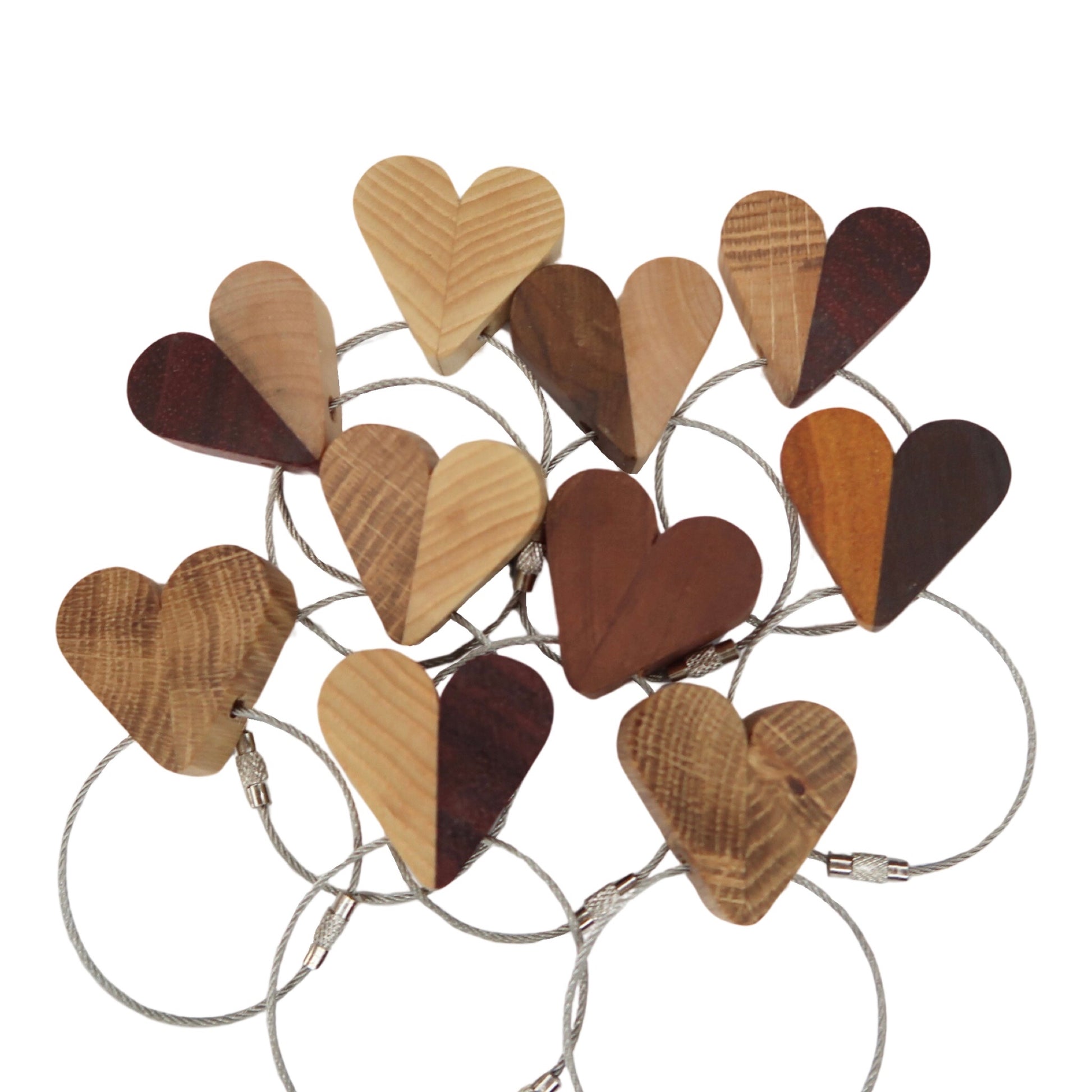Each set includes 10 keyrings made from varying woods, making each piece unique and one-of-a-kind. Measuring approximately 40mm in height, 40mm in width, and 14mm in depth, these keyrings are just the right size to add a touch of style to any set of keys.