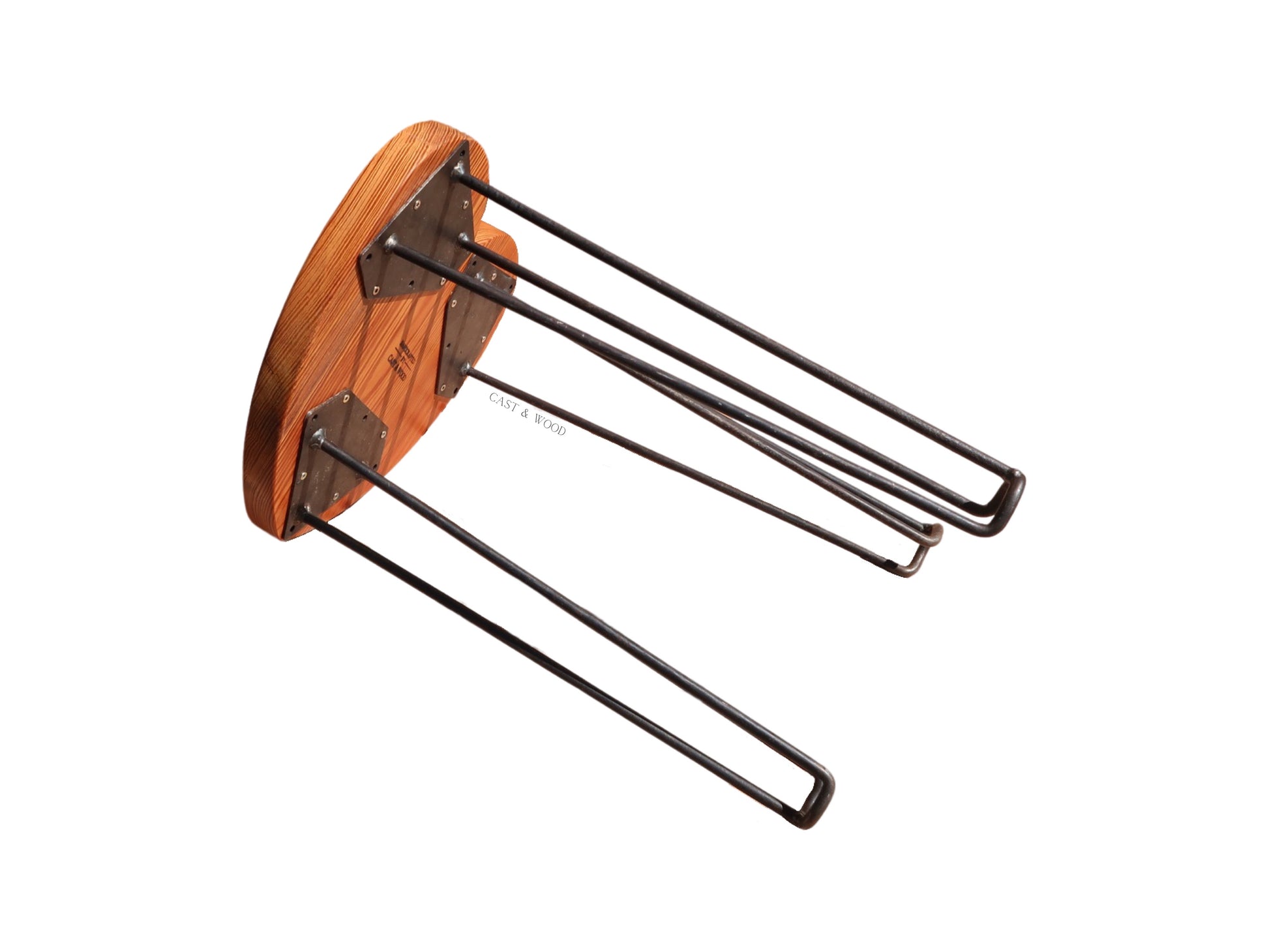 Adding to its charm are three cast iron hairpin legs, providing both stability and a touch of industrial elegance. The fusion of vintage wood and contemporary legs creates a captivating juxtaposition, seamlessly blending tradition with modernity.