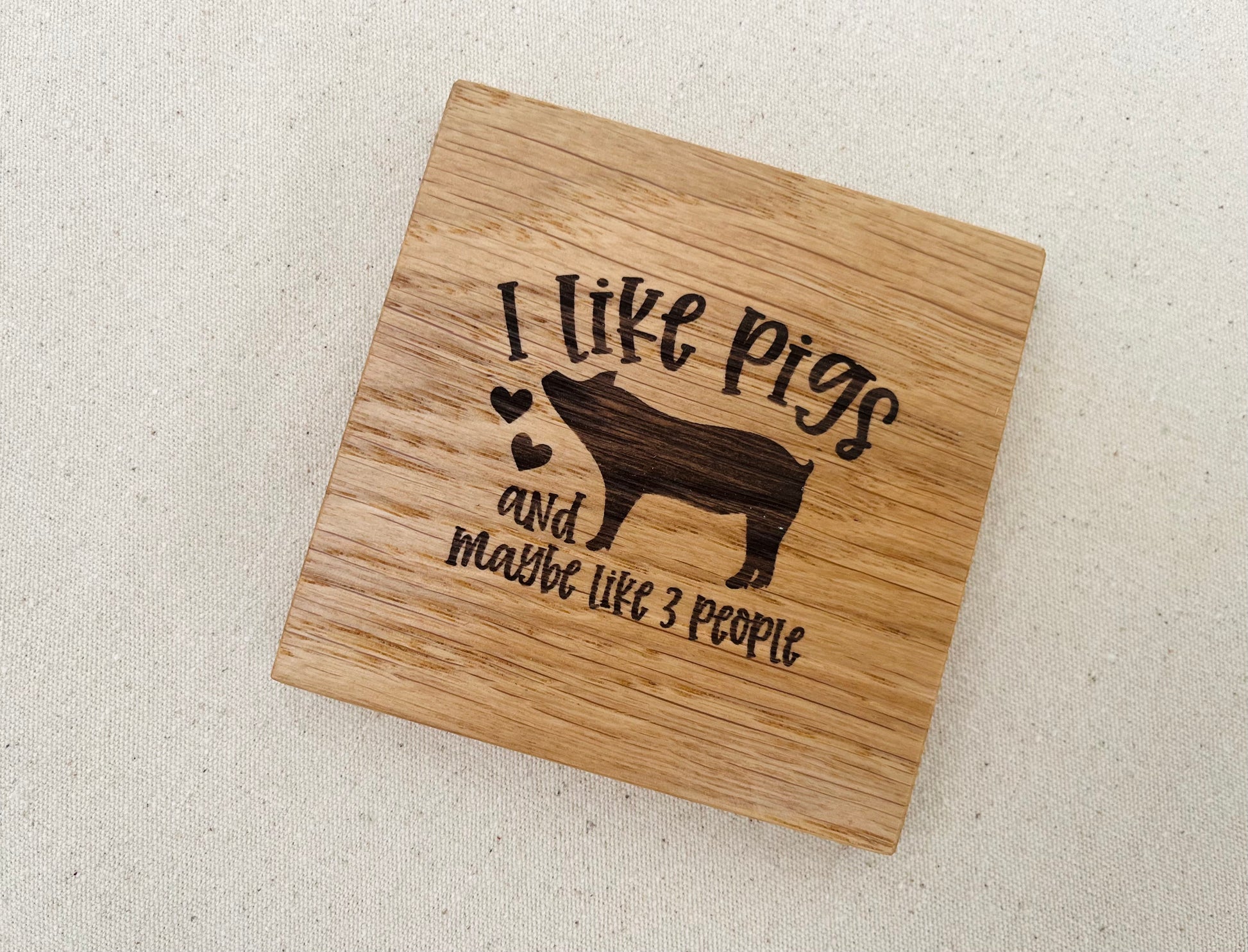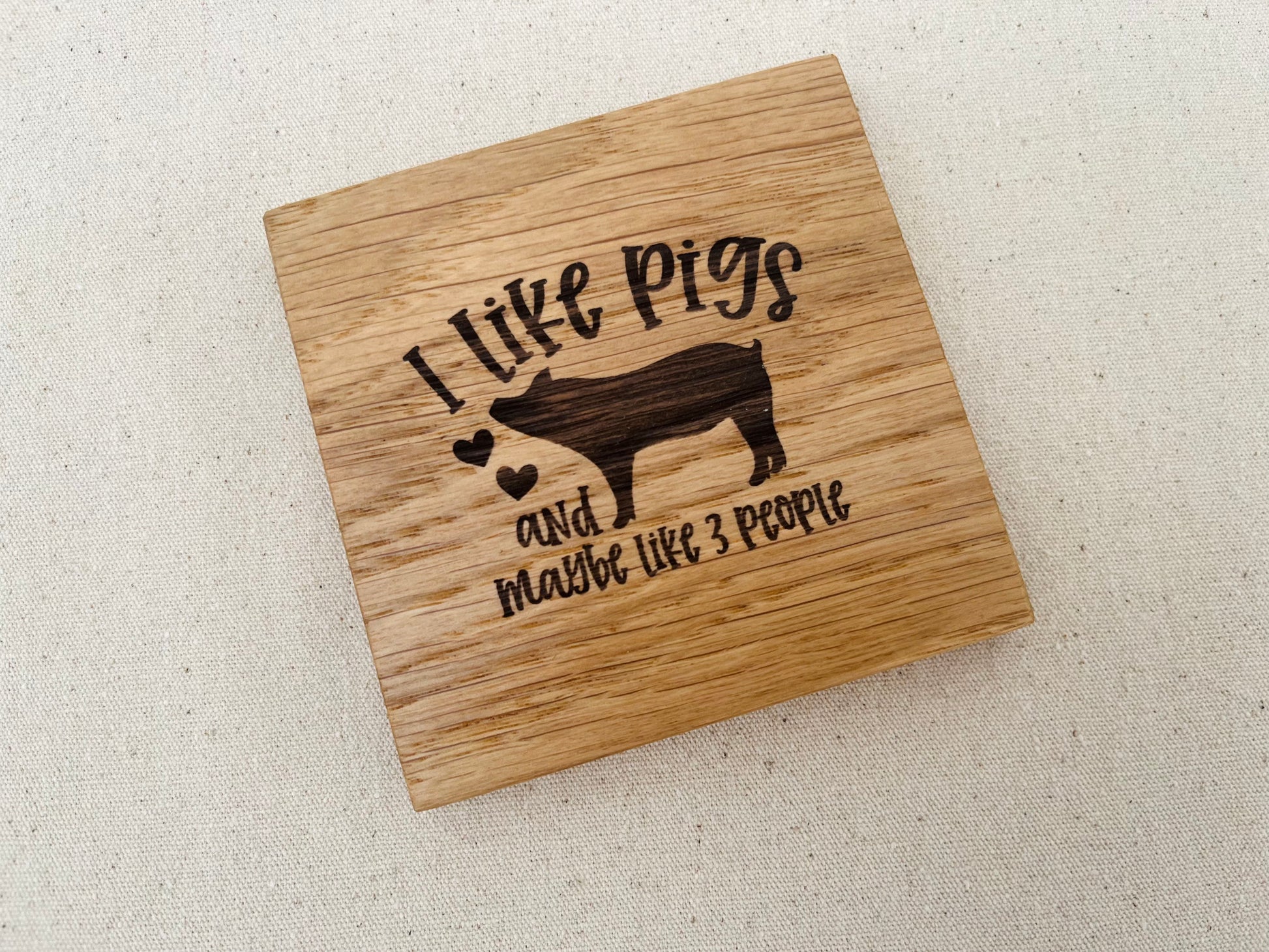 Introducing the I Like Pigs Engraved Coaster, a delightful addition to your home that’s bound to spark conversation. If you’re a fan of pigs and appreciate a good laugh, this coaster is perfect for you. Made from solid oak, it boasts durability and style, featuring an engraving that reads 'I Like Pigs and maybe like 3 people.'
