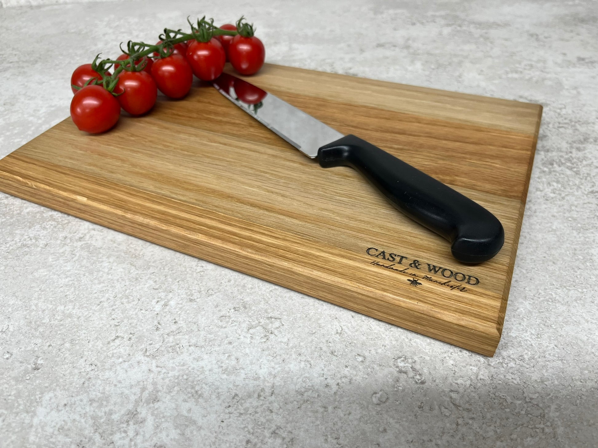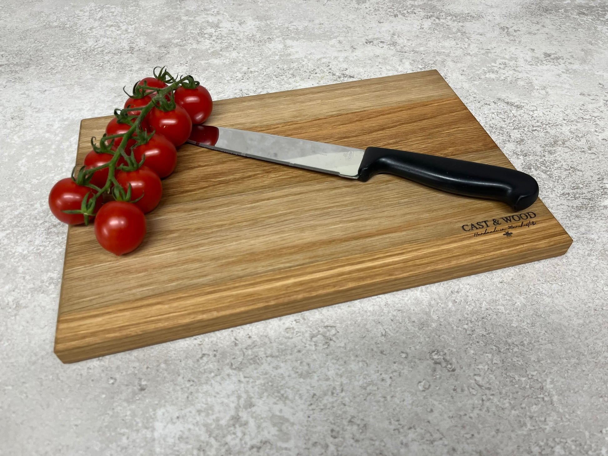 Meet your new kitchen essential: the Large Solid Oak Chopping Board. Designed for those who appreciate both style and functionality, this expertly crafted board is handmade in Manchester, ensuring top-notch quality and a touch of artisan charm in your culinary space.
