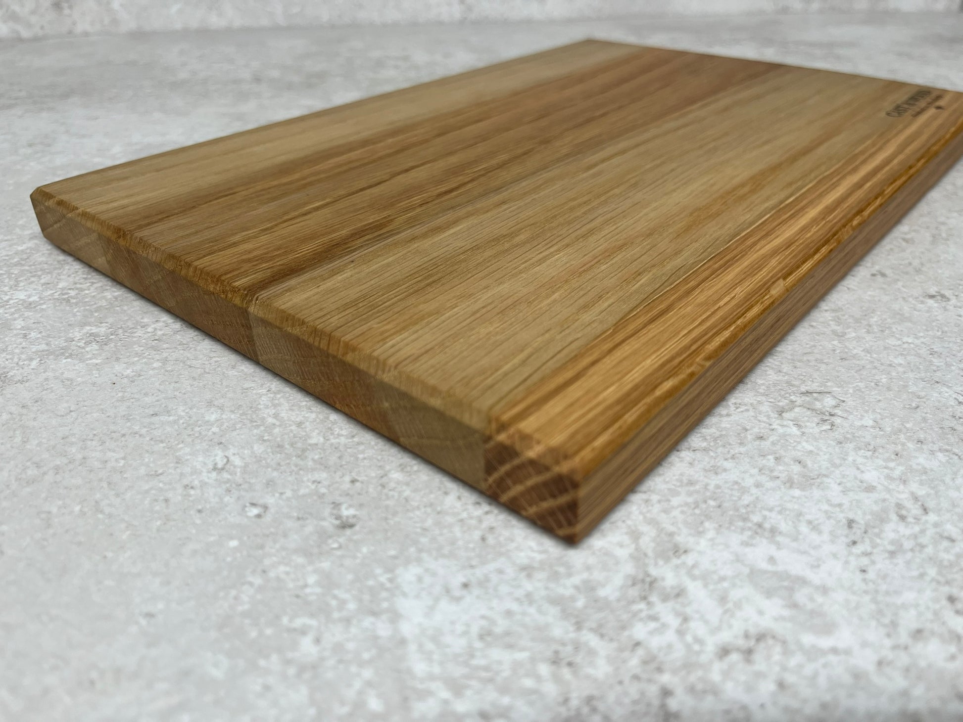 Constructed from face grain oak, this chopping board is more than just a tool; it’s a statement piece that brings a sense of elegance to your kitchen. With dimensions of approximately 30cm x 20cm x 2cm and weighing about 900g, it offers ample space for all your chopping needs. Whether you're slicing fresh vegetables for a vibrant salad or dicing meats for a hearty stew, this board has got you covered.