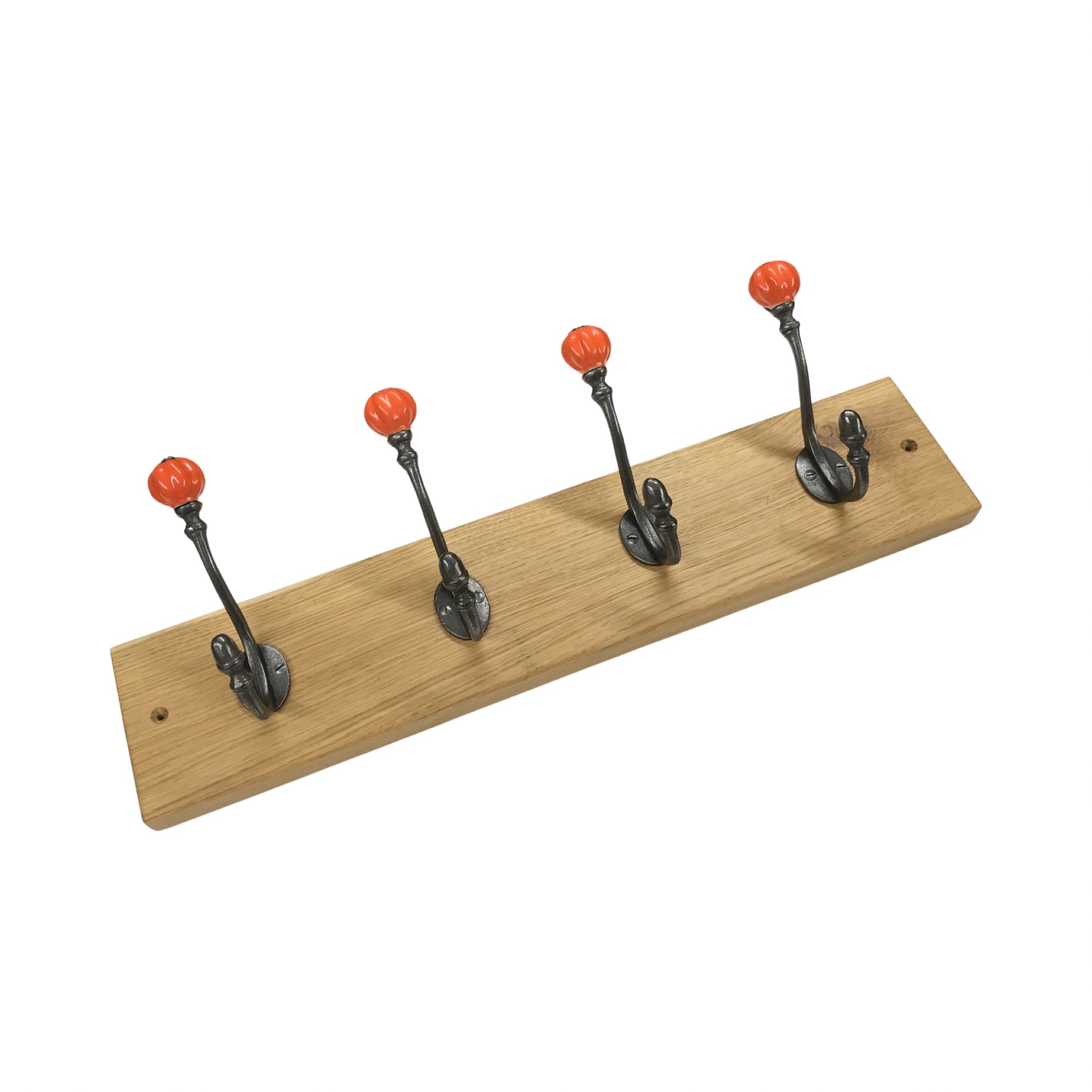 Orange Acorn - Oak Backed Mounted Coat Rack