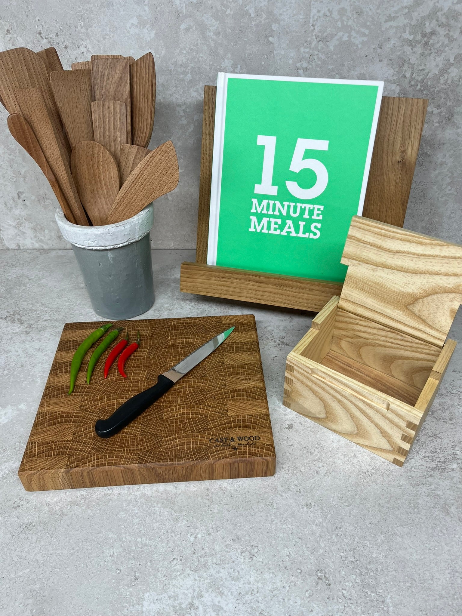 Introducing the Medium Solid Oak End Grain Chopping Board, a kitchen essential that’s not just functional but also a stunning addition to your culinary space. Handmade with precision in Manchester, this chopping board combines style and utility in a way that will impress both seasoned chefs and home cooking enthusiasts alike.