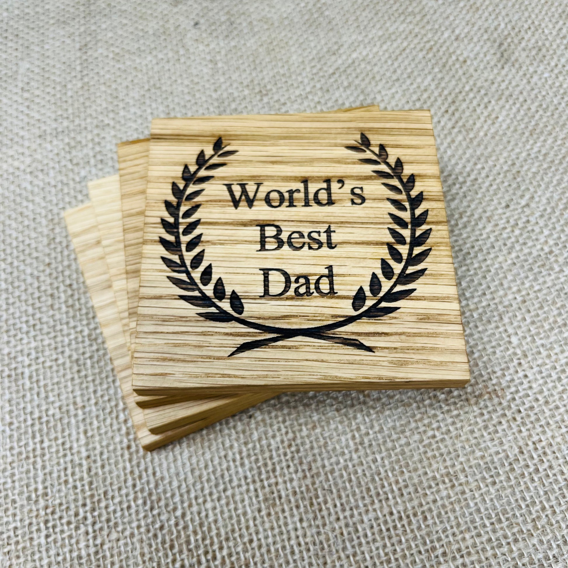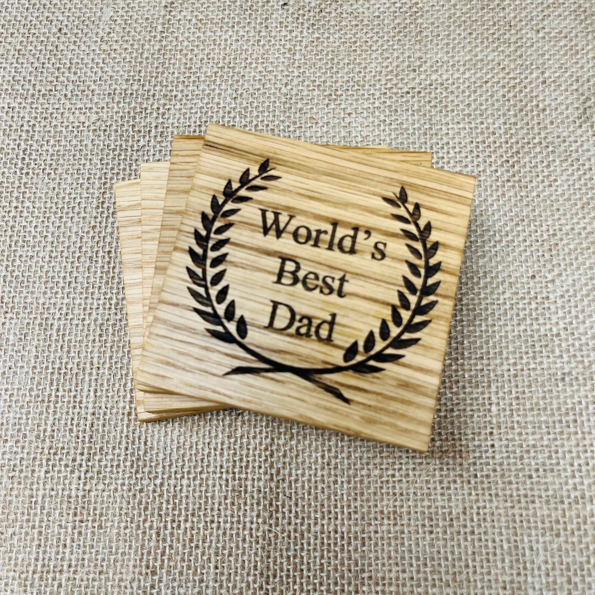 World's Best Dad Coaster - Engraved Solid Oak